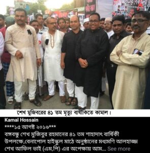কামাল হোসেন বেনাপোল ৫ নম্বর দিঘীরপাড় ওয়ার্ড আওয়ামী লীগের সভাপতি আব্দুল হক খোকনের ছেলে।